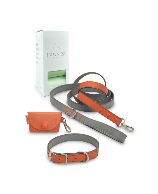 Your pup loves walks – and with this walk kit, you’ll love them just as much! Our savings kit features all of the essentials you need to make walking your best friend more comfortable. With a collar, leash and bag holder made of vegan leather, this kit is high-quality, stylish and sustainable. With minimalistic yet brightly coloured designs, each piece in this kit works together to create a streamlined look you’ll be proud to show off.